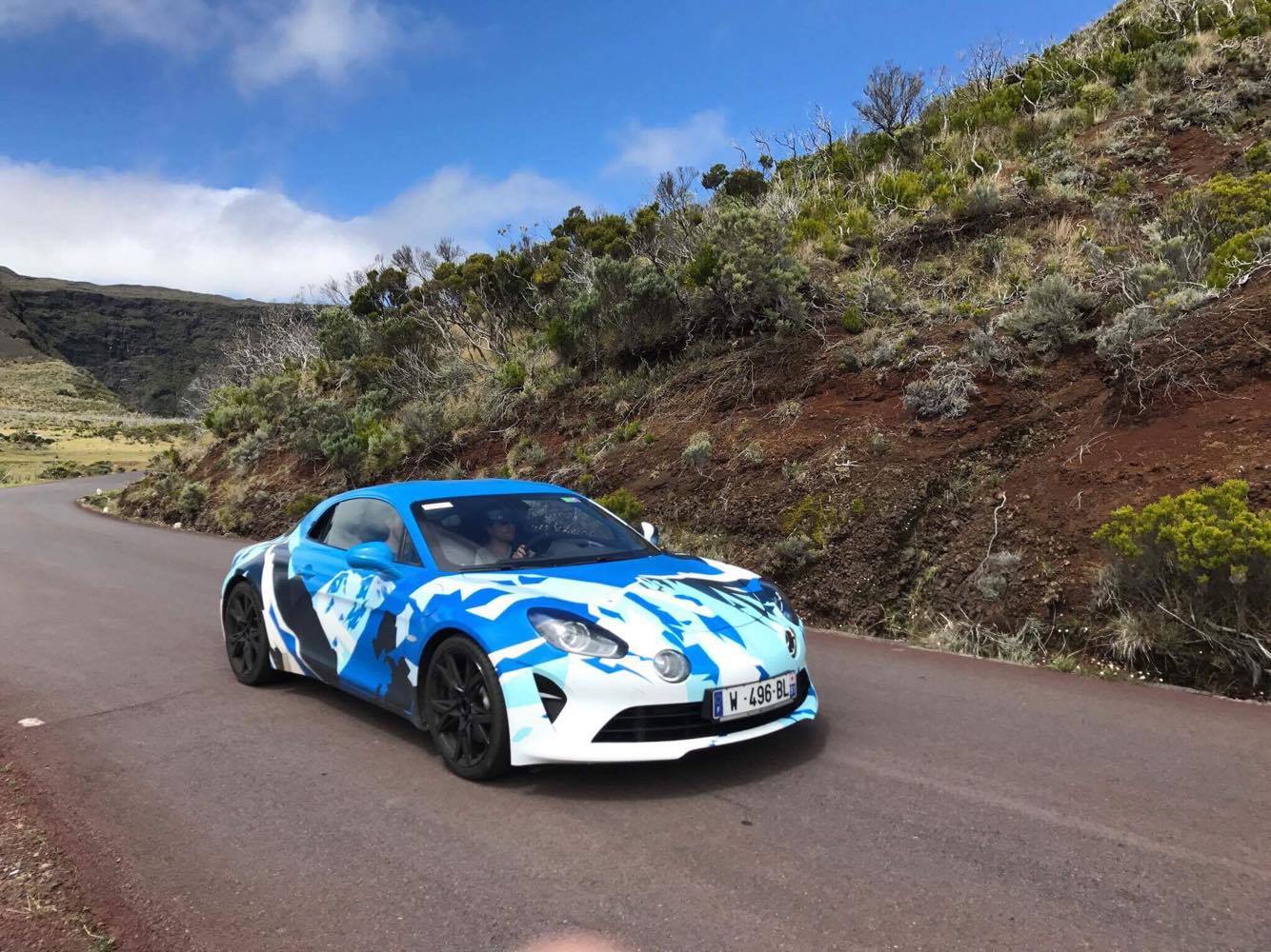 Certains l’ont croisé à La Saline à Saint Paul, d’autres au Volcan. Au vu de la forme de l'auto, tout porte à croire qu’il s’agirait de la nouvelle Alpine A110-A120 2017.