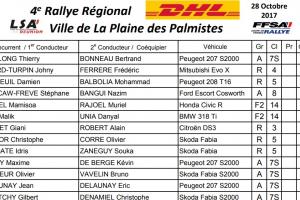 Résultats du 4ème rallye régional de la Plaine des Palmistes 2017