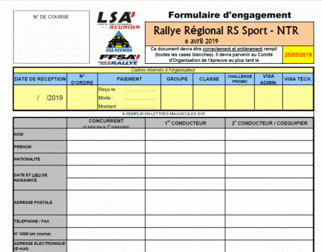 Résultats du Rallye Régional RS Sport - NTR - 6-7 avril 2019